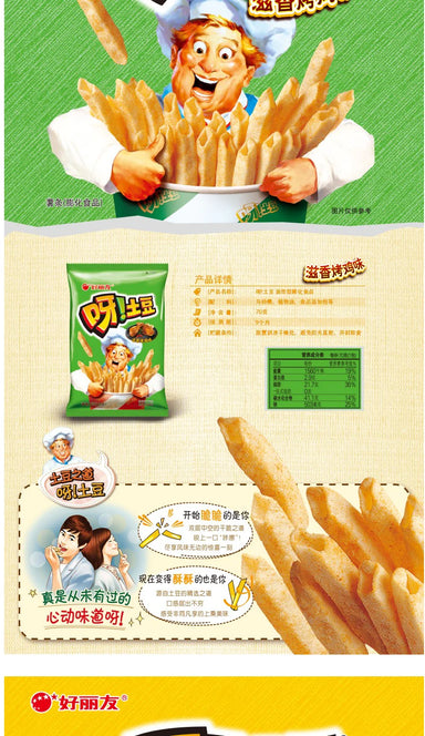 Orion Ya! Potato Fries – Roasted (BBQ) Chicken Flavour, 70 g A flavour-packed snack that brings the savory, smoky richness of grilled chicken to a ...