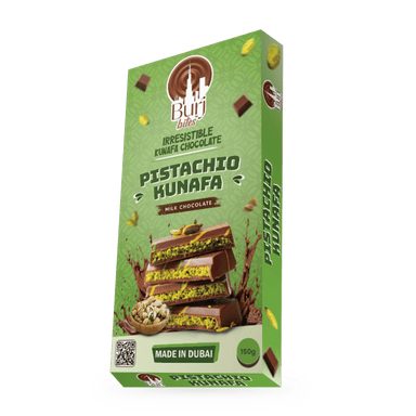 Indulge in the exquisite fusion of East meets indulgence with Burj Bites’ Pistachio Kunafa Milk Chocolate.Handcrafted in Dubai, this decadent bar b...