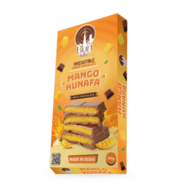 Burj Bites Mango Kunafa Milk Chocolate 150 g — A Taste of Tropical Dubai 🥭🍫 Handcrafted in Dubai, this exquisite chocolate bar unites velvety milk ...